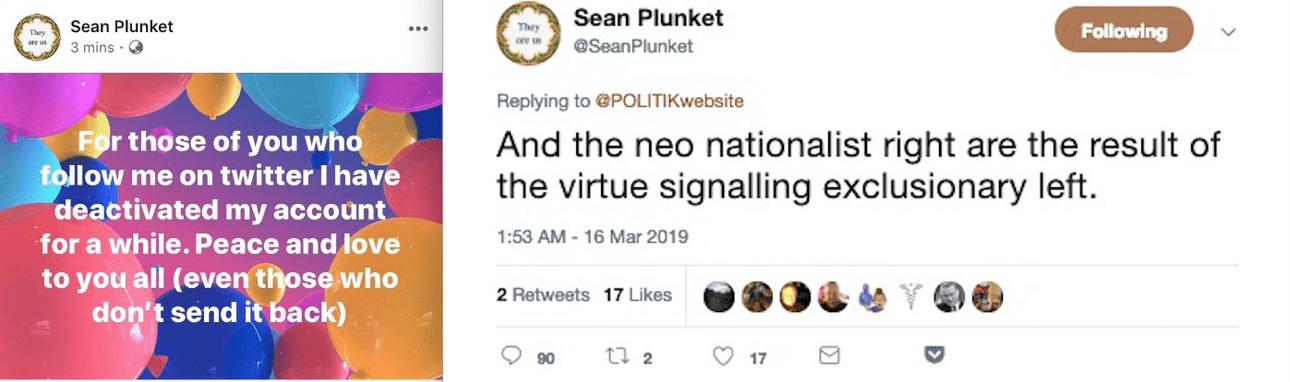Following the publication of this story, Plunket contacted the Spinoff objecting to the deactivation of his Twitter account being reported alongside other deletions. He said he has never expressed any Islamophobic or anti-immigrant views.