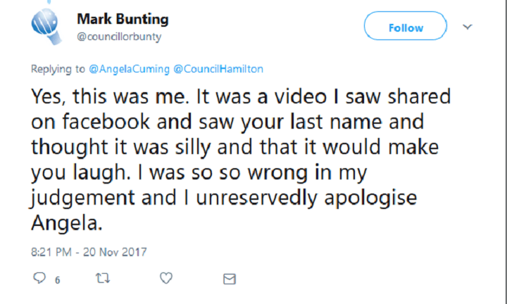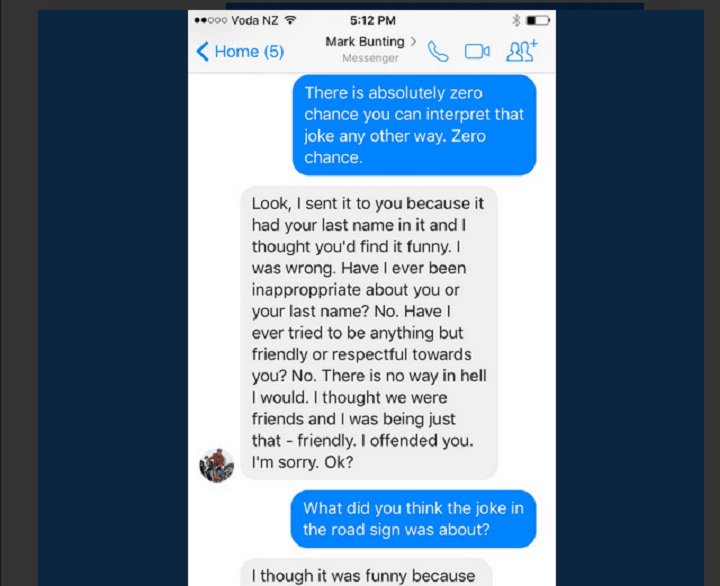 ‘He literally sent it out of the blue. I haven’t spoken to him or exchanged any form of communication with him in weeks. Initially I genuinely thought his Facebook account had been hacked and this was a spam message. How I felt? Humiliated. Angry. I cried. I felt defeated, too. I am trying my best as a freelance journalist to cover Hamilton City Council and this is what I am up against. And I felt betrayed. I thought Cr Bunting was one of the “good ones”. I decided to share it online because I’ve been empowered by what’s been happening overseas in the wake of the Weinstein scandal.’