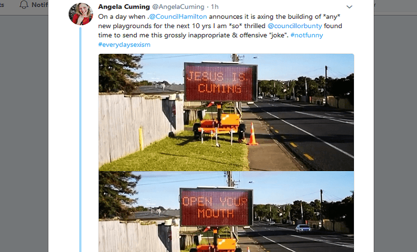 When journalist Angela Cuming was sent a “grossly inappropriate and offensive” “joke” by a Hamilton City Councillor she called the behaviour out online. It sparked a discussion about the everyday sexism women face in the workplace, assembled by Emily Writes. Comments, “jokes”, microaggressions, and out-right hostility by insecure men were common. Here are some of their stories, beginning with Angela Cuming’s message from Hamilton Councillor Mark Bunting.