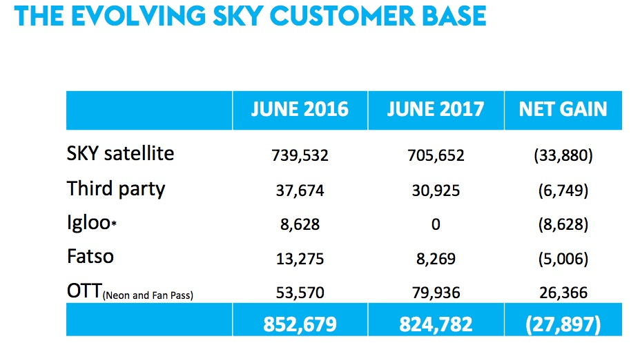 The headline number is a 21% decline in net profit, from $147.1m in FY2016, but the most frightening figure for investors will be the decline in total revenues – from $928.2m to $893.5m – and the loss of 33,800 satellite customers, by far its most lucrative segment.