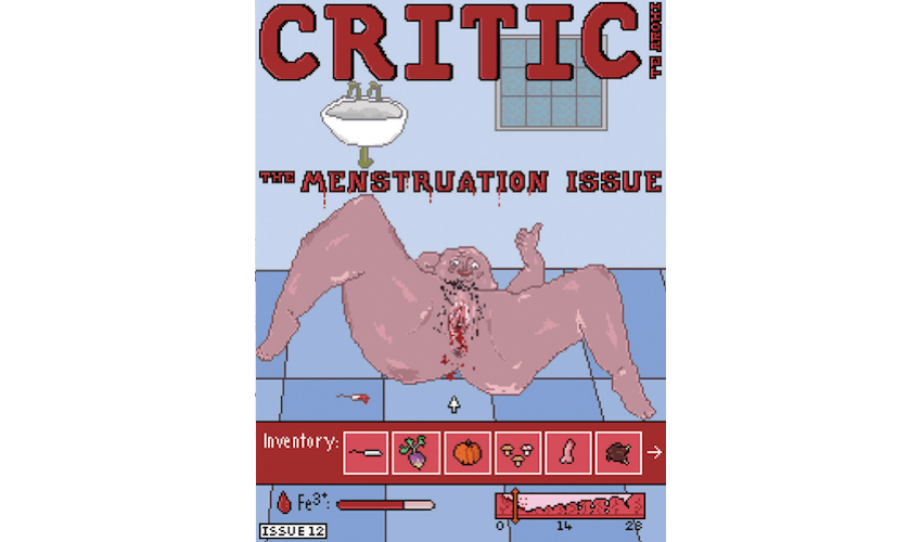 From a cover design perspective, we didn’t want to beat around the proverbial bush; no weird blue liquids or cutesy hints. There was only one option: a bleeding vagina.