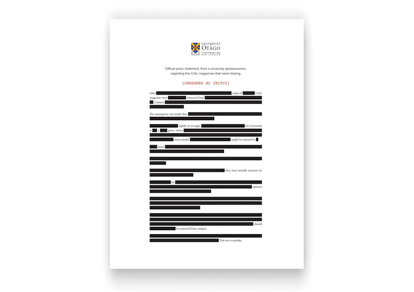 A later OIA would reveal that the University had in fact not received any complaints from anyone prior to the magazines being destroyed except the very Campus Watch staff who decided to remove and destroy the copies.