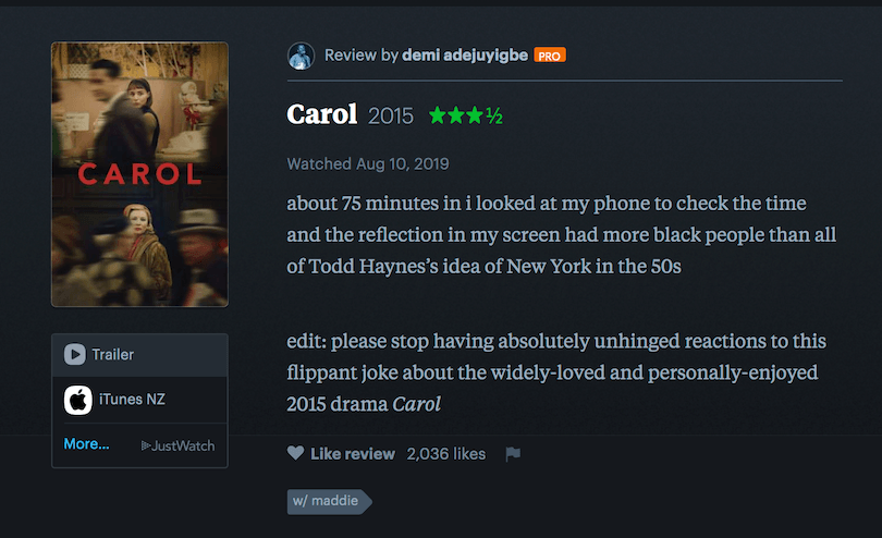 “Letterboxd isn’t big in the sense of the world,” observes Adejuyigbe. “But it’s big in the world of movies.”