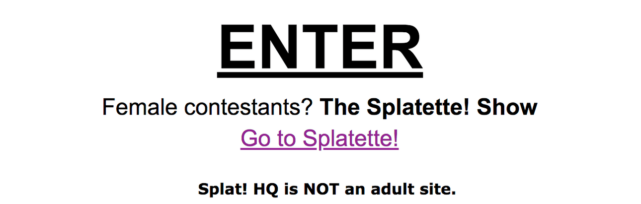 While I waited to receive a reply from whoever runs Splat HQ, they removed the “NOT an adult site” disclaimer.