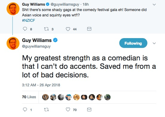 As an art form, stand up comedy has traditionally been heavily skewed to the white and male. Offhanded racism shouldn’t be a surprise. We’ve become used to othering comments in our mainstream media, courtesy of the likes of Duncan Garner. But comedy is also incredibly useful at pointing out the faults of society, subverting the norm, and in calling out the powerful in safe and clever ways. In this day and age we should be demanding more of the comedy we see.