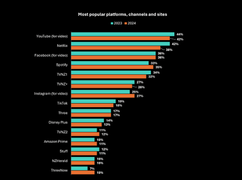 Its versatility is highlighted by its significant role in both video and music streaming, making it the most popular platform for discovering new content, including podcasts and music. As New Zealanders increasingly turn to digital media, YouTube’s ability to cater to a wide range of content needs, from entertainment to education, cements its status as the go-to platform for diverse media consumption. / Liam Rātana