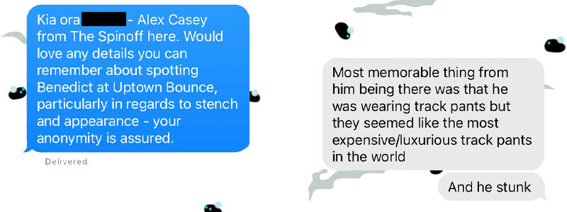 The Spinoff has spoken to an anonymous source who spotted Cumberbatch at popular Auckland trampoline park Uptown Bounce in July, 2020. “Most memorable thing from him being there was that he was wearing trackpants but they seemed like the most expensive/luxurious trackpants in the world,” they said, “and he stunk.”