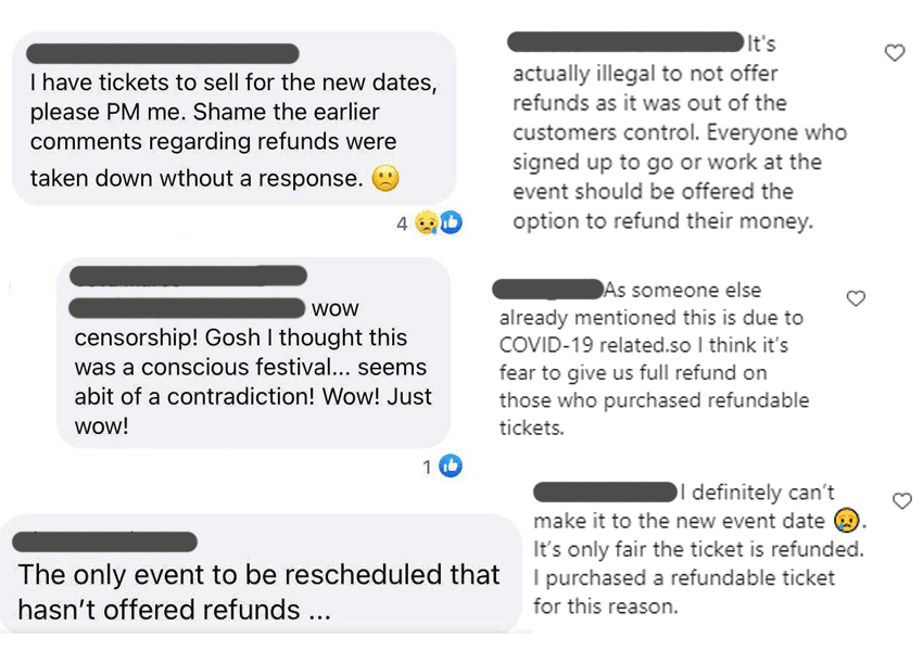 While many commenters were supportive of the news, the response was swiftly met with questions about its decision not to offer refunds, even for those who’d purchased tickets “fully refundable in the event of a cancellation due to Covid”. Some pointed out that several comments challenging the decision had since been removed.