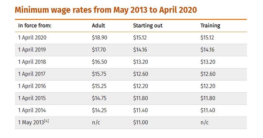 From April 2021, the minimum wage has gone up to $20 an hour before tax for all workers aged 16 and over, and $16 an hour before tax for those on the starting-out or training rate.