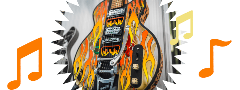 This allows Diegel to create designs such as Americana, “a New York and American themed” guitar with a stars-and-stripes design. Inside the body, Diegel has fashioned landmarks like the Statue of Liberty, the Brooklyn Street Bridge and St. Patrick’s Cathedral. He says themed guitars like this are the most fun to design.