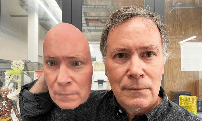 On a table by the door, several tiny models of people printed in colour are so precisely detailed that even their skin looks realistic, criss-crossed with red veins and hair-like strokes. On the wall, there are several life-size models of Diegel’s own face – they can trick Samsung and Huawei’s facial-recognition software, he tells me in a conspiratorial tone, but not iPhones. One of the replica faces has eyeballs in it that can move side to side. One of the lab’s other projects involves food printing, where powdered food can be used to create easily-chewable customised meals with specific nutritional values. They’ve also been involved in making models of the city for Auckland Council, anatomical models, and replicas of delicate artefacts.