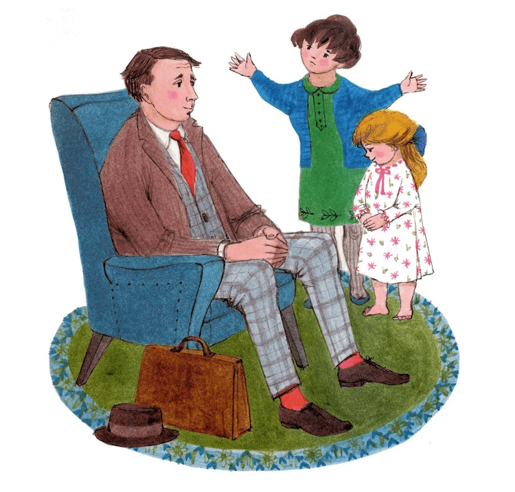 Sophie’s mummy said, “I wonder who that can be. It can’t be the milkman because he came this morning. And it can’t be the boy from the grocer because this isn’t the day he comes. And it can’t be Daddy because he’s abandoned us to enjoy adult company, respect, and fair pay for his labour. We’d better open the door and see.”