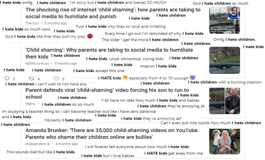 Is it really that much of a stretch to say that watching videos of children being punished, breaking their things in anger and being told this is “good” parenting, celebrating child shaming, ageism, the treatment of children in public, the mothers are called breeders and kids called crotch nuggets, the celebration of hatred of children is all connected?