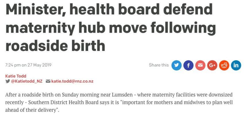 And as predicted, on Sunday, a mother gave birth on the side of the road. Health board executive director Lisa Gestro told 1 News that “some aspects of the transition have been challenging”. Because challenging is the word I’d use for having to give birth in an ambulance that’s pulled over in a ditch. If the Lumsden maternity unit was still open, the mother would have been able to give birth there.