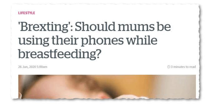 Clinical psychologist Dr Natalie Flynn worries that texting could distract mothers from the crucial task of holding their infant’s gaze as they feed. I don’t remember my newborn making a lot of eye contact, but admittedly things were hazy back then. So I ignored my now school-age kids and used my phone to ask Facebook if brexting was bad.