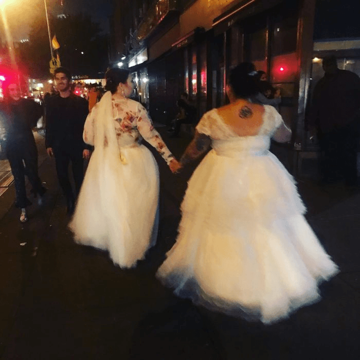 The first weekend I’m in New York I meet a friend for drinks after her wedding in Central Park. The brides are gorgeous, swishing through Greenwich Village in their wedding gowns. They get stopped for congratulations on every corner. Strangers ask them for photos in the street. I can’t stop smiling. We connected over two years ago because she had a huge Tumblr following and helped me by reblogging my survey about 1D fans and tech. We’ve talked almost every day since. This is the first time we’ve met in real life