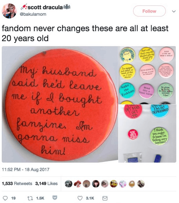 Fandom predates the internet, of course. Fans came together around the things they loved in ‘zines and at conventions long before dial-up modems stuttered into life.