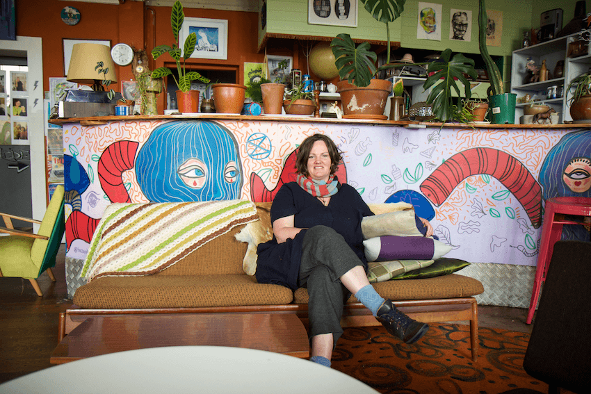 When Kirsty Porter was looking for a venue to host exhibitions, gigs, workshops and markets for the local community of artists and musicians, “we didn’t see a place for us in Palmy and so we built it.” That was seven years ago. Porter – an artist, activist and educator at Te Manawa art, science and history museum – helped create Snails: Artist Run Spaces with the financial support of the Palmerston North City Council. Snails features artists’ studios, a gallery and twice-monthly gigs, workshops, markets and open days. The space is simultaneously expansive and cosy with red leather booths, a bar covered in lamps and art, and a stage with a velvet backdrop.