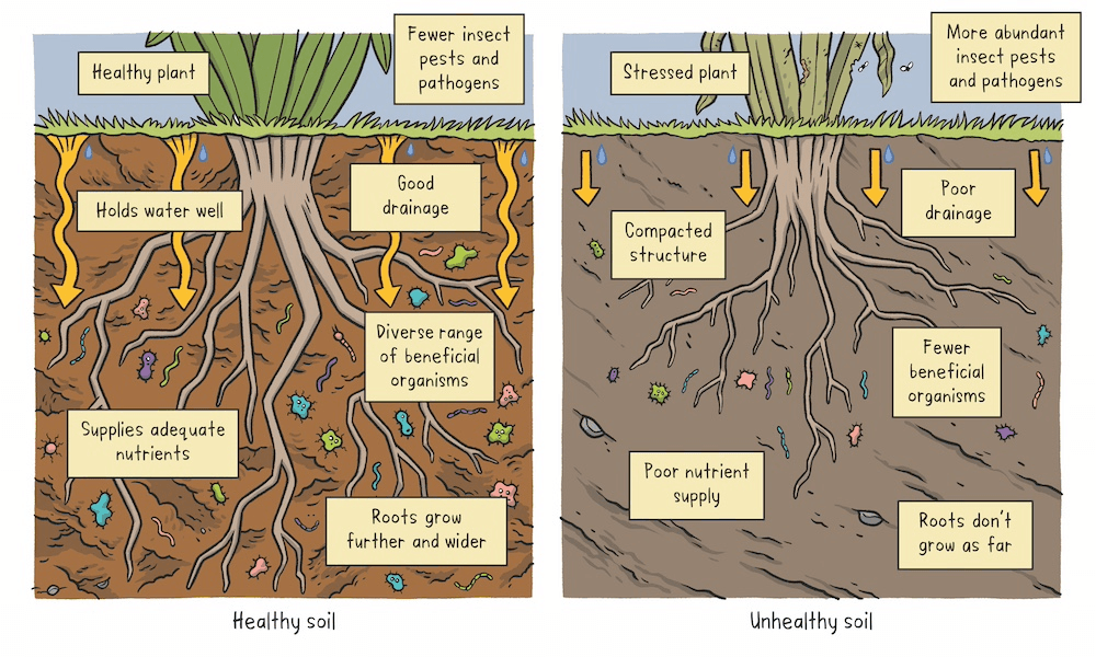 We’ve churned it up with ploughing and tilling, left it bare and rootless, and allowed wind and water to eat away at our rich topsoil. This has left the soil depleted, running on empty.