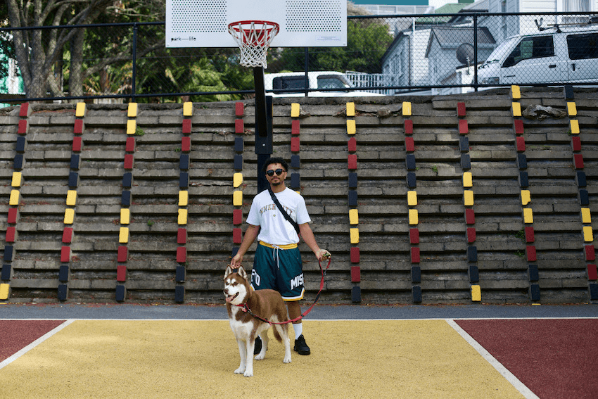 Home Reserve is a small oasis in the increasingly developed inner city suburb of Arch Hill, just across Great North Rd from Grey Lynn. Central Auckland is at the heart of Dupé’s world and music – this is where he grew up, and his family still lives nearby. But he hasn’t been here in a while and is interested to scope out the recent $383,000 upgrades, including a revived basketball court, new playground and mural.