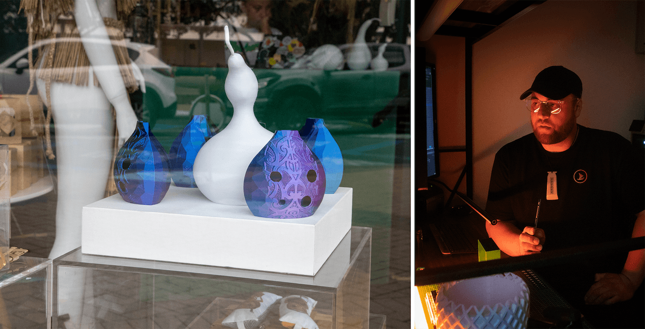 He was commissioned to create a 3D-printed Konei sign to hang in the new shop front, along with some other decorative elements – the first commercial commission of this kind for the Vaka team.