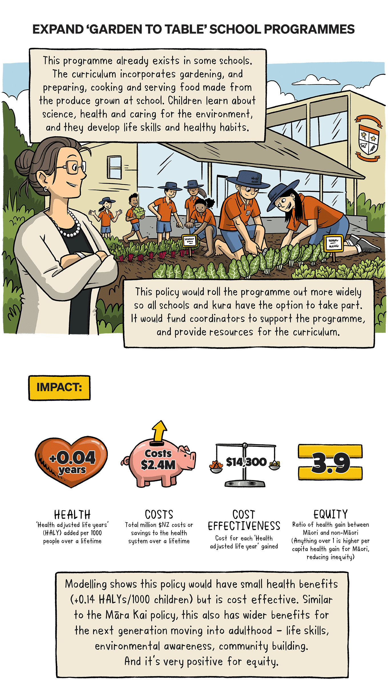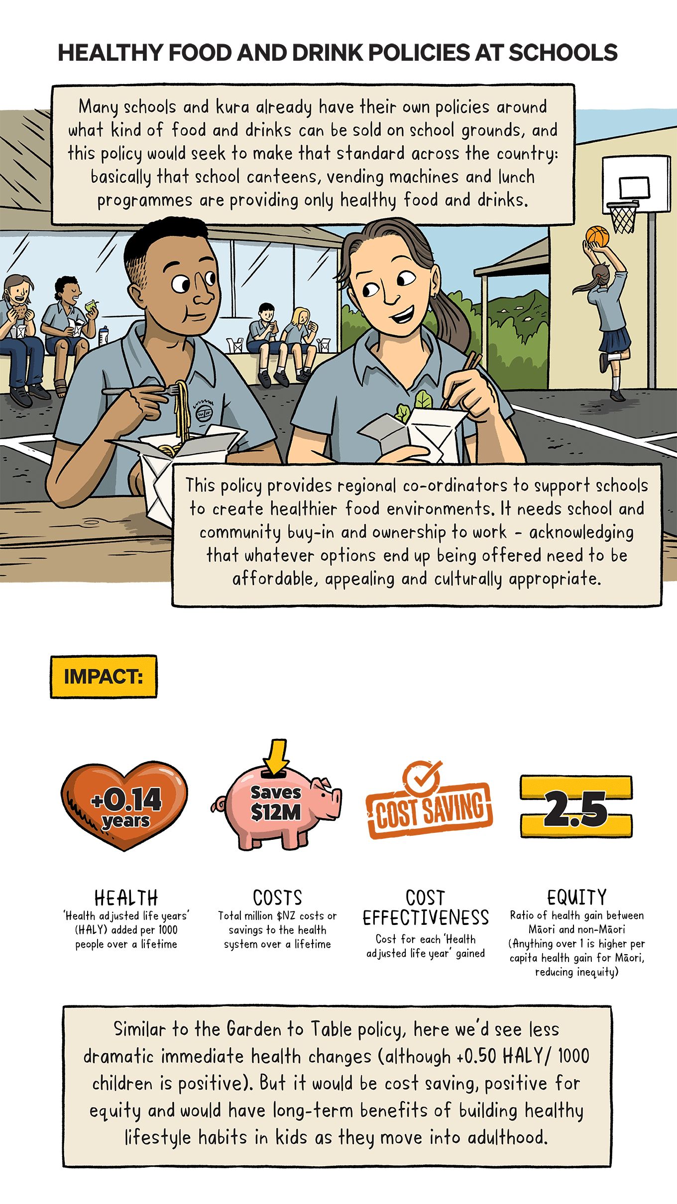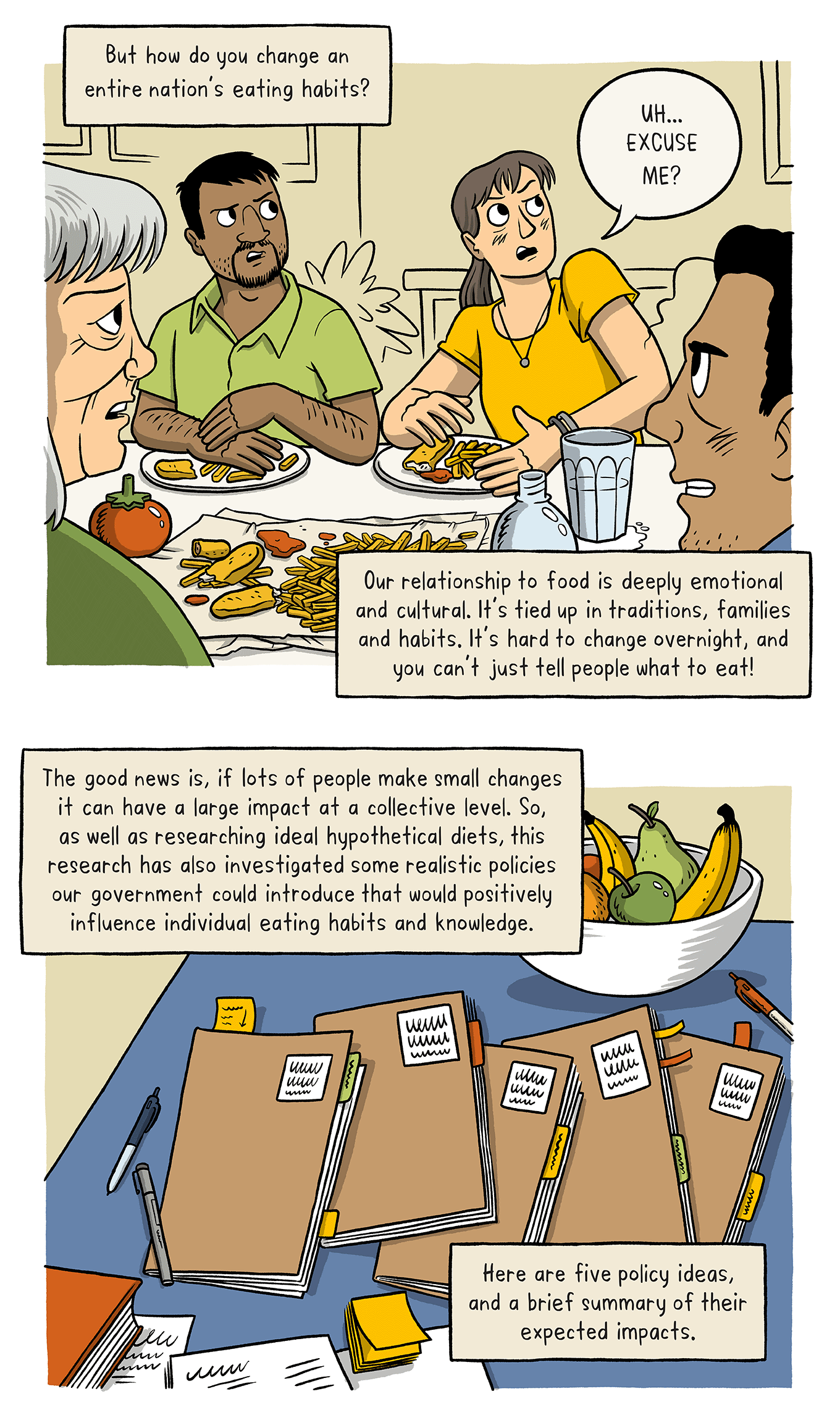 How could a sustainable diet impact your health? What would the impact be on the planet if lots of us made that shift? Dr Cristina Cleghorn (University of Otago) has been investigating the impact of sustainable diets on health and the effects of population-wide dietary change for the Healthier Lives National Science Challenge. This comic details the research, five policy ideas that came out of it, and the impact those policies could have.
