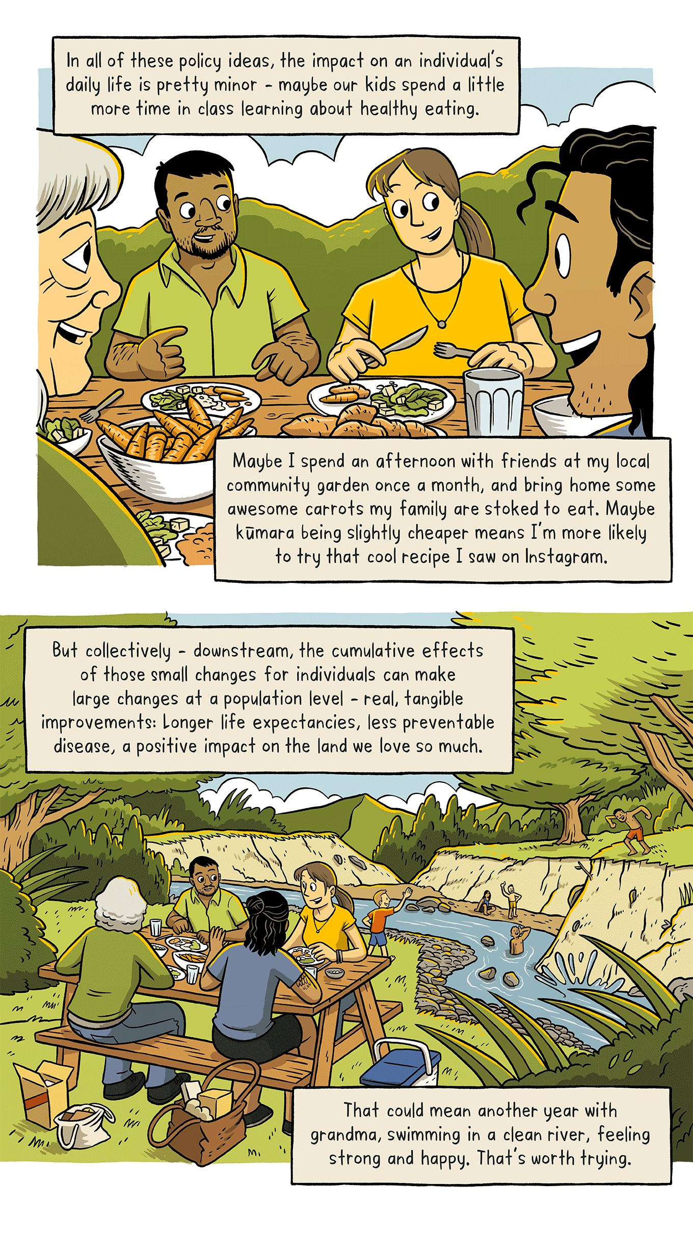 Written and illustrated by Toby Morris and Daylight in collaboration with Dr Cleghorn and Healthier Lives – He Oranga Hauora National Science Challenge.
