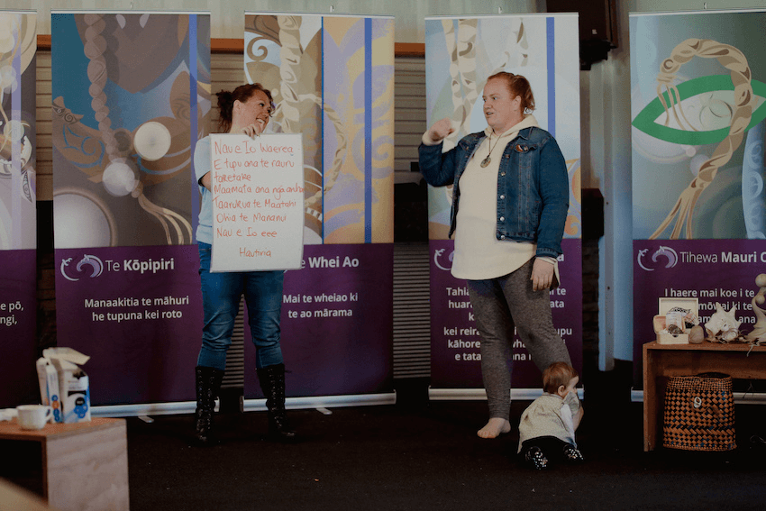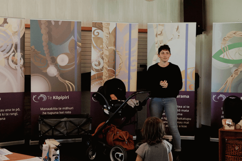 After all that she’d learned at Hine Kōpū, Ellen wanted to contribute back to the community and share her knowledge with wāhine hapū. So one week before Florence was born, Ellen spoke at the Hine Kōpū I attended in Whangārei on how to communicate with your pēpi. She explained the importance of engaging verbally with baby and maximising language learning, even while still in the womb.