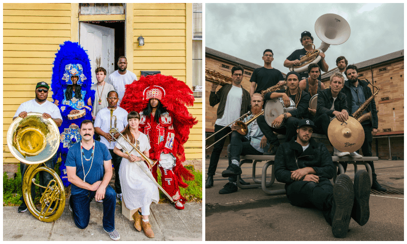 This year New Orleans brass marching band, Cha Wa, with it’s Native American Mardi Gras outfits, has a 10-minute schedule overlap with Australian 10-piece Hot Potato Band. It’s a chance to see their energies combined, and create a special organic collaboration that belongs to the festival.