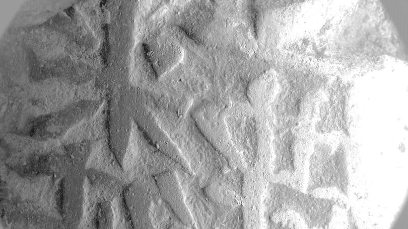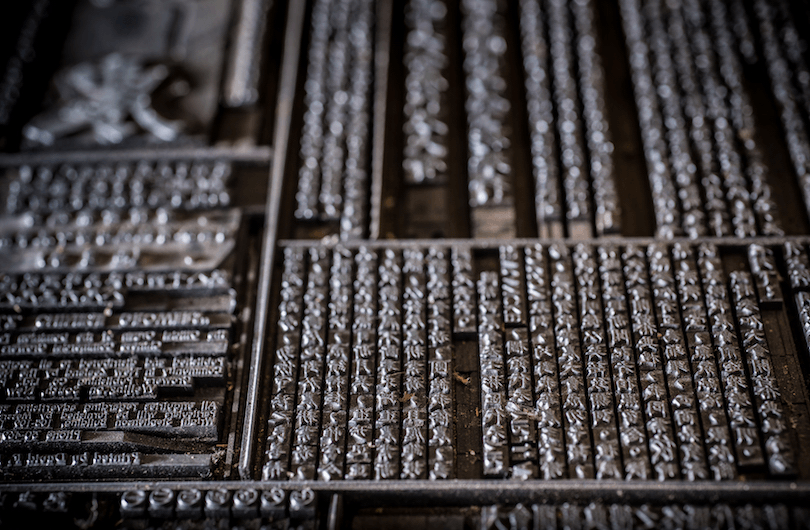 Looking at the characters under the microscope is like landing on another planet: glimmering ridges are pockmarked with telltale signs of wear, whispering of once-thriving life. On some of the sorts, Pukekohe earth is still packed in around the characters’ metal crests.