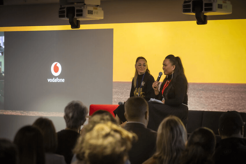 Kirstin Te Wao and Tuihana Ohia at the launch of Vodafone’s Honouring the principles of Te Tiriti o Waitangi policy in July (Photo: supplied)