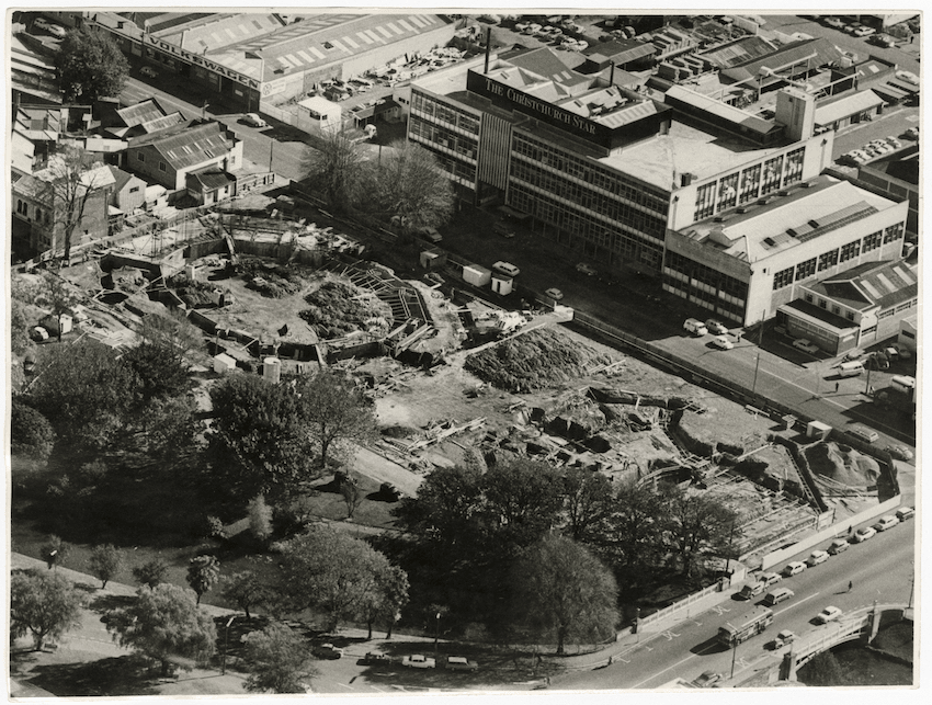 When the Christchurch Town Hall design competition was announced in 1965, it was a given that the building would be constructed, at least in part, in concrete. By this point in architectural history, modernist architects could no more paint or render over concrete elements than Mountfort would have painted or plastered over the Port Hills stone of his Gothic Revival Canterbury Provincial Council buildings further up the river.