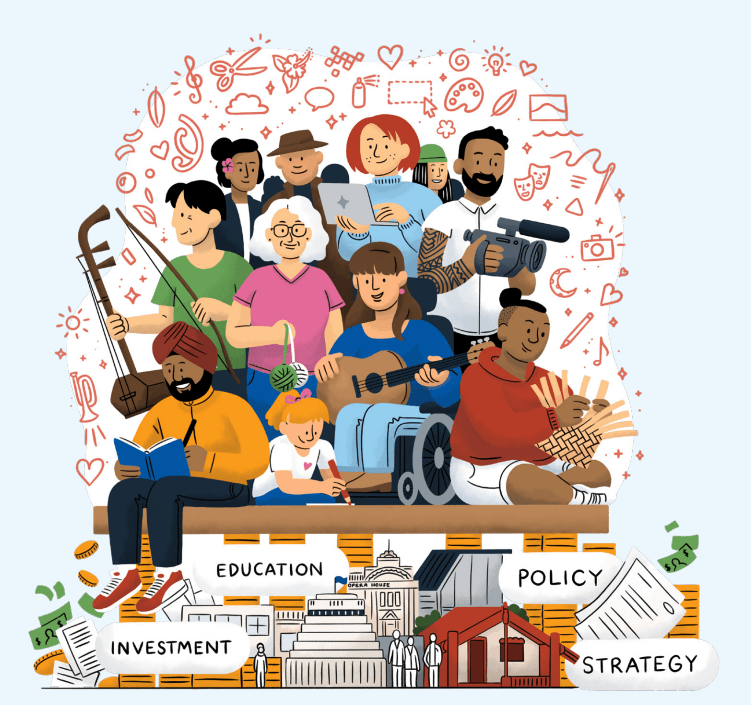 New Zealanders support arts, culture and creativity more than ever. They see the positive impacts in their communities every day – on health and wellbeing, building vibrant and connected places to live, supporting their identity, and so much more. Creative New Zealand supports moving away from an idea of artists being resilient and trying to get on with things and shifting towards valuing artists’ intellectual property and supporting them in more meaningful and sustainable ways, so that we make steps towards an Aotearoa where arts, culture and creativity truly thrives.”
