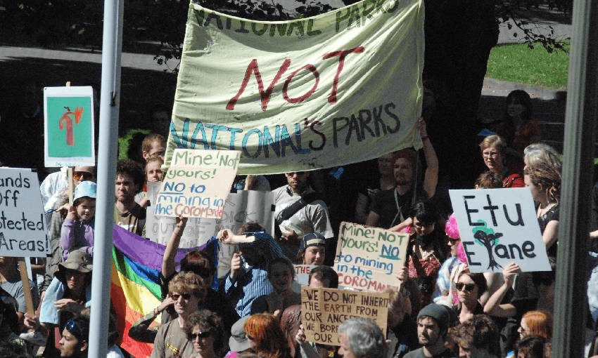 In May, 40,000 people marched through Auckland’s CBD to protest the protected land mining proposal. Earlier that year, 500 protestors had stormed the steps of parliament.