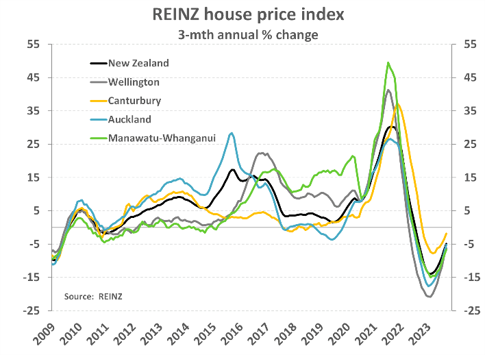 After some hefty falls, Auckland and Wellington house prices have managed to increase by a monthly run rate of about 1% since June.