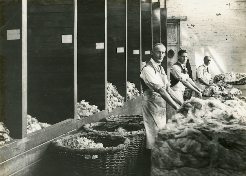 So one can’t talk about the bush shirt without talking about wool; of its versatility, its durability and its suitability for the rugged outdoors. Human bodies are the least equipped of all the animals to deal with inhospitable climates; the wonder fibre, wool, has enabled us to prosper. The first woven wool garments date back to around 300BC. Somewhat more recently, in the late 1800s hefty three-piece woollen suits made in the South Island were deposited by the NZ government in metal drums around the sub Antarctic islands and intended for marooned castaways. While many were worn and saved lives, Te Papa has one of these suits which remained unworn and was collected (still in perfect condition) in 1947 by a United States ship.