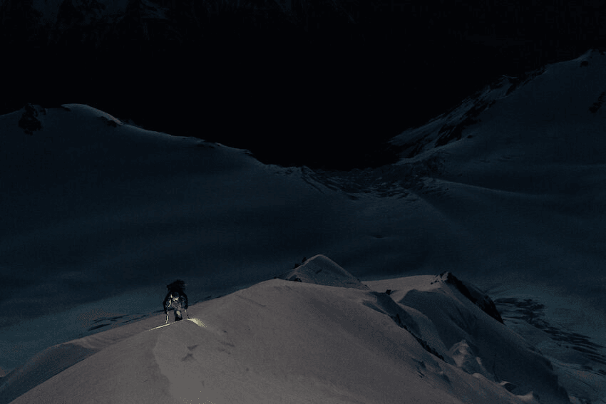 For Lang, the photo represents the connection between the climber and the mountain. “That’s your whole world, really. It’s step by step, it’s move by move. It’s in that world that you really get connected to the mountain. You’re focused, listening. Certainly always listening for any random sounds that might indicate either ice is falling from above, or something is falling below me.” The immediacy of the danger pushes the mind into a meditative state. “Death is ever-present, and you are forced to focus.”