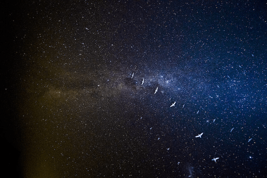 Edin Whitehead’s entry, for example, a masterpiece of composition, shows a procession of Buller’s shearwaters/rako in flight, the Milky Way far above them. Looking at the photo now – she has an A0 print of it above her bed – brings with it a mixture of emotions. Whitehead is a doctoral researcher at the University of Auckland, her PhD investigating the effects of climate change on the lives of nocturnal seabirds. The photo was taken on what was meant to be a recce for a later research expedition on the Poor Knights Islands. It became, however, the last time she was able to get away in support of her research before lockdown hit, taking the season with it. “We had lots of fat chicks in burrows and we were going to stick GPS on their parents, and that all sort of went down the tubes with lockdown.”