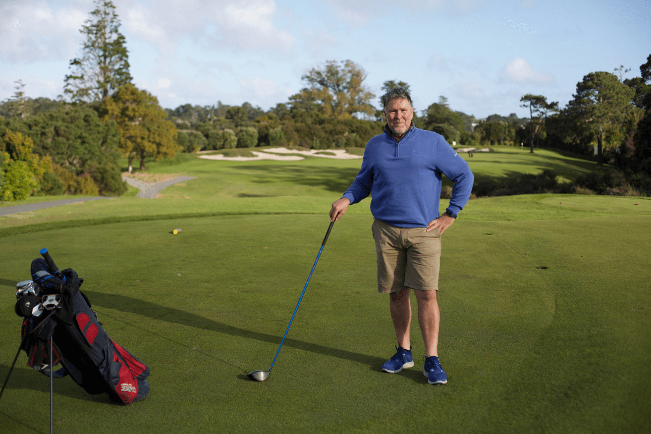 In the low sun on a crisp afternoon in late winter when The Spinoff photographed Donaldson at the Titirangi golf course, his shadow formed a long silhouette as he hit his drive from the first tee. Alone on his stroll up the fairway, he seemed completely at peace.