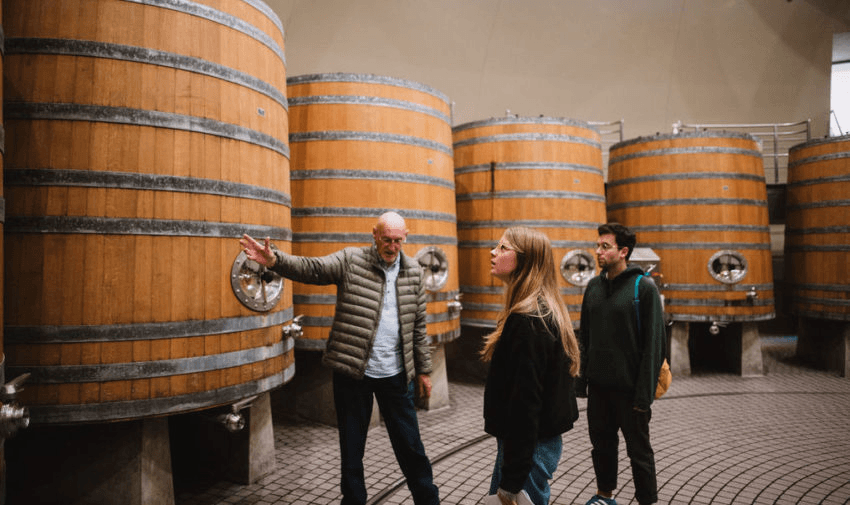 In what was good news for my unquenchable thirst, the last two pit stops on Prinsy’s tours were both wineries. We were welcomed to Church Road by a delightful woman named Denise, who popped a bottle of their Blanc de Blancs – we can’t call it champagne but we can say it’s just as yum as champagne – on arrival. Glass of bubbles in hand she hurriedly took us through their facilities, from another procession of majestic barrels to the underground concrete vats that ex-owner Tom McDonald used to make wine during the 1920s.