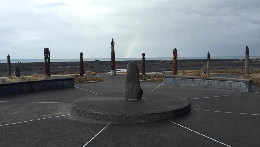 The tour ended with us at Waitangi Regional Park, where the Treaty had been brought to local shores, standing in the middle of a celestial compass used by ancient waka to navigate the seas. The rain cleared and a rainbow took form as Ike explained how his ancestors used the stars to find their way home. A light shower began as we sang a karakia to finish the tour, and I have never been more grateful to those raindrops for concealing my blubbery tears.