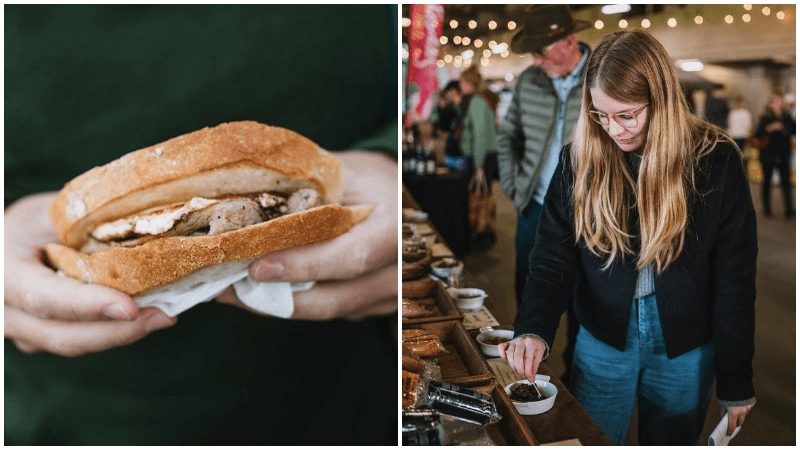 As soon as we realised just how many free samples were available, we feasted like the world’s fanciest sparrows. A thimble of black pudding? Don’t mind if I do. A mandarin segment for your nerves? Rude not to. A shard of walnut brittle? Charmed, I’m sure. I bought a technicolour array of macarons from Benjamin at Monsieur Macarons and chased it down with some hot sauce and truffle infused olive oil from The Village Press. This was living.