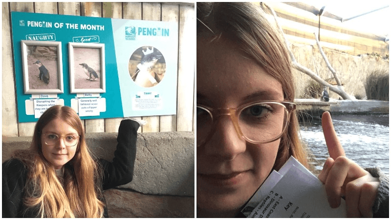 The naughty and good penguin sign did not disappoint, even if there was only one visible penguin out to play (Tommy, of course, goodie two shoes). We traced the penguin hall of fame, before heading into the comforting womb-like darkness of the Kiwi enclosure. Sitting in the quiet, staring into the abyss for over seven minutes, I was ready to leave when I heard a promising rustle. There she or he was! A Kiwi! An enormous fluffy unit who waggled its butt as it pecked optimistically at the window – inches away from my face.