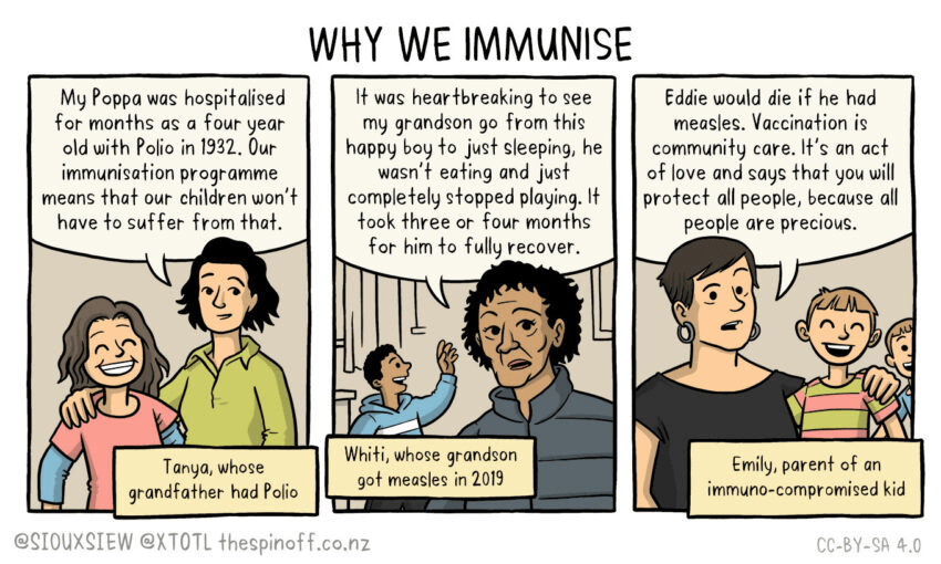 Community immunity is really important, because there will always be members of our community who aren’t able to be vaccinated. Babies who are too young like Whiti’s grandson. Or people with underlying medical conditions which make vaccination potentially unsafe for them.