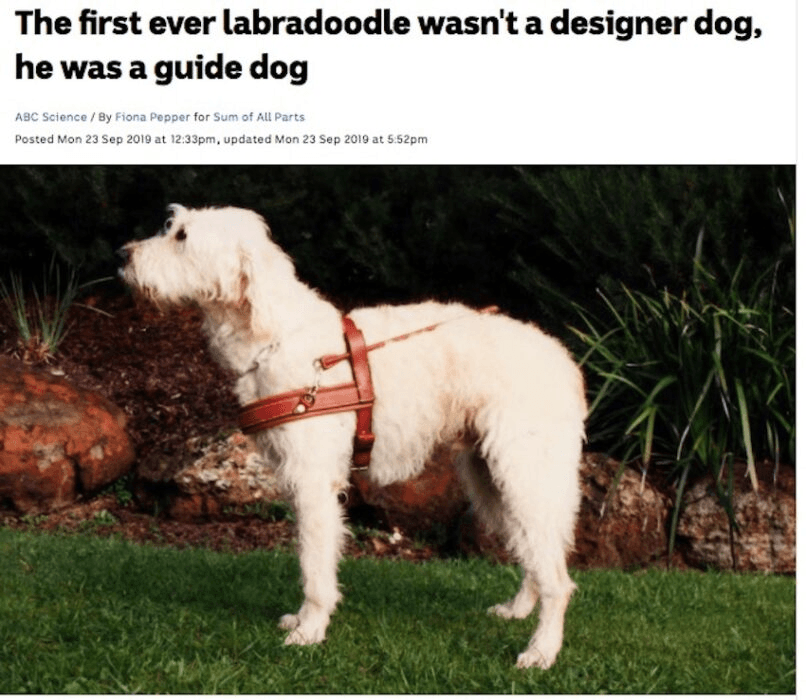 One pup was sent to the woman in Hawaii to start its working life as a guide dog, and Conron found himself with two more pups from the litter, still in Australia. He knew they were clever enough to be guide dogs, but he couldn’t convince anyone to take them due to their mixed breed. Desperate, he went to the Guide Dogs Victoria PR department and asked for help promoting a new, non-allergenic guide dog. And he gave it a name to really sell it – the labradoodle.