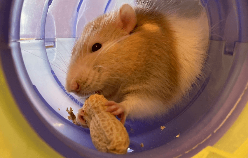 The rat parties – where a large group of rats are set free in a row of trestle tables to socialise – are a regular highlight. The rats swing from hammocks, do puzzles, explore tubes, and forage through pine cones for treats. Clarke brings out some peanuts, still in their shell, to demonstrate the dexterity of Cheese, one her prized rats. He holds the peanut in his tiny rat hands like he is praying, and then goes to town with his tiny teeth. She hands me a very fluffy white rat named Odin who is noshing on a Burger King hash bite with both hands. I feel an instant connection.