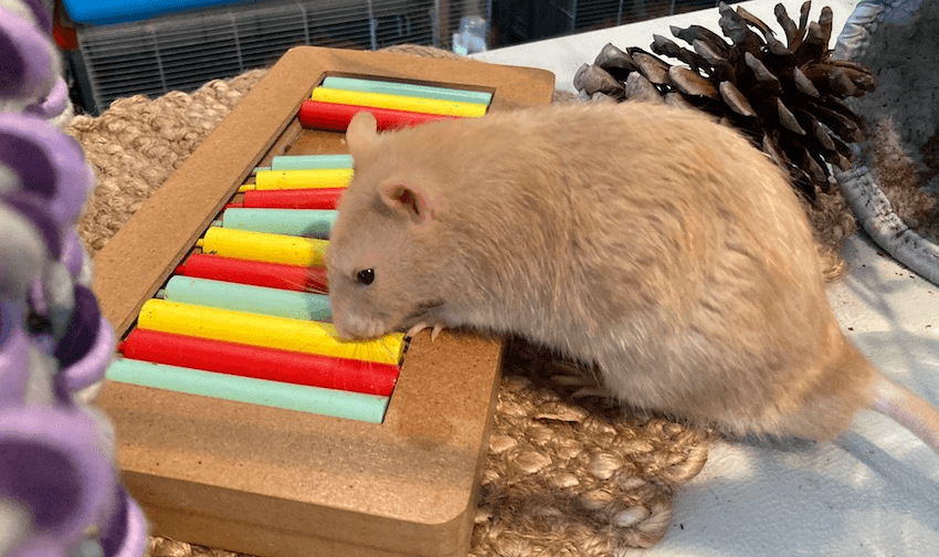 Why the demand? Like most things, it comes down to Covid. “There was quite a big jump in the waitlist for rats during the last couple of lockdowns,” Clarke explains. “I think people were looking for pet companions and when the SPCA is all out and you can’t find any dogs or cats, people started to turn to rats.” She describes her rats as “mini dogs” – when she comes home from work she is greeted by her mischief (the collective noun for rats) rattling the sides of their cages and begging to be released for pats.