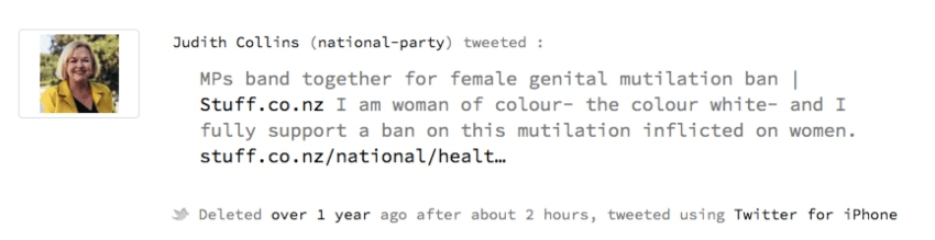 When asked in 2020 if Collins was concerned that National’s front bench was looking a bit monoethnic, Collins replied, “is there something wrong with me being white?” Reframing a valid question into a perceived slight on one’s own ethnicity while also being in the best position to address the problem raised? You got it, that’s a Karen.
