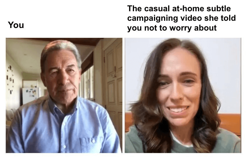 This is all to be expected of Peters, who loves to go rogue at every opportunity. Which makes it even funnier that he then attempted a Jacinda Ardern-trademark at-home Facebook video. He did not nail it.