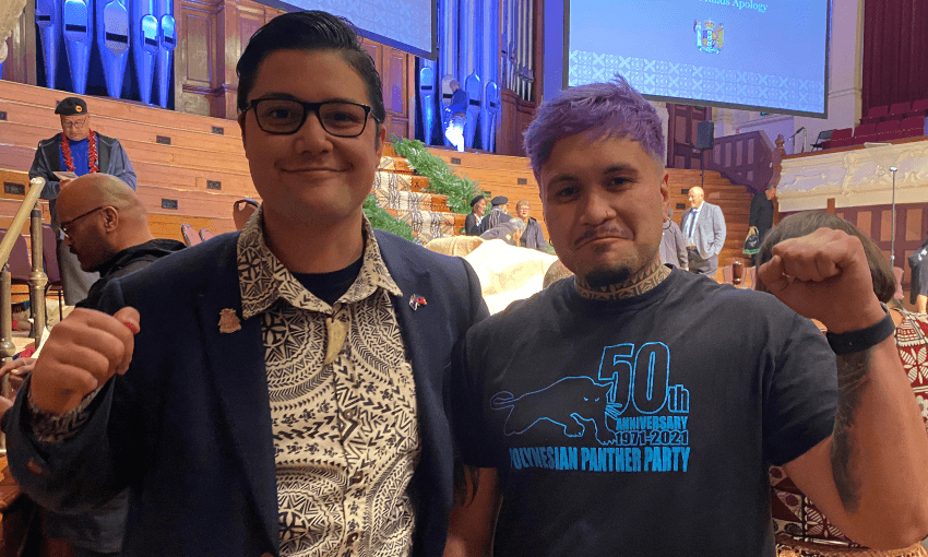 Two of the youngest faces among dignitaries on the stage for the apology were Josiah Tualamali’i and Benji Timu. The pair were singled out by Polynesian Panthers’ co-founder Rev Alec Toleafoa as being instrumental in getting this event happening, by driving a petition campaign that was presented to parliament earlier this year.